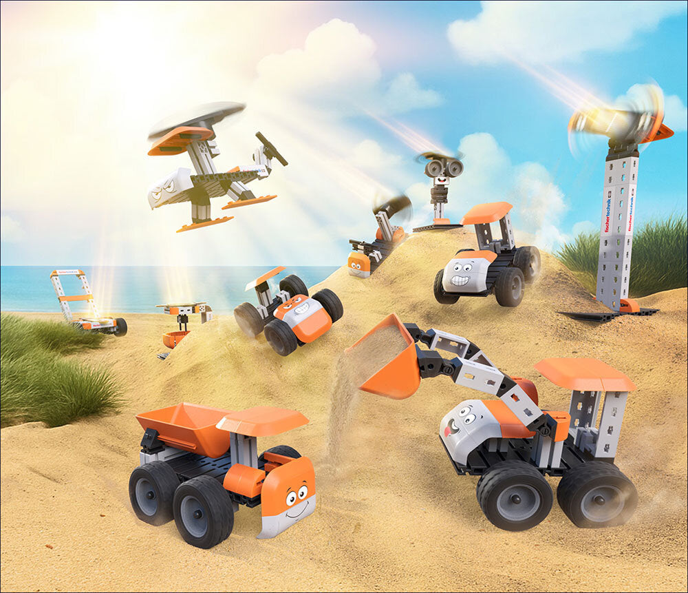 Ein integriertes Solarmodul bringt Bewegung ins Spiel und vermittelt altersgerecht, wie Sonnenenergie genutzt werden kann. Das System fördert nicht nur ein erstes Verständnis für Mechanik und Energie, sondern schult gleichzeitig Motorik, räumliches Denken und Kreativität.