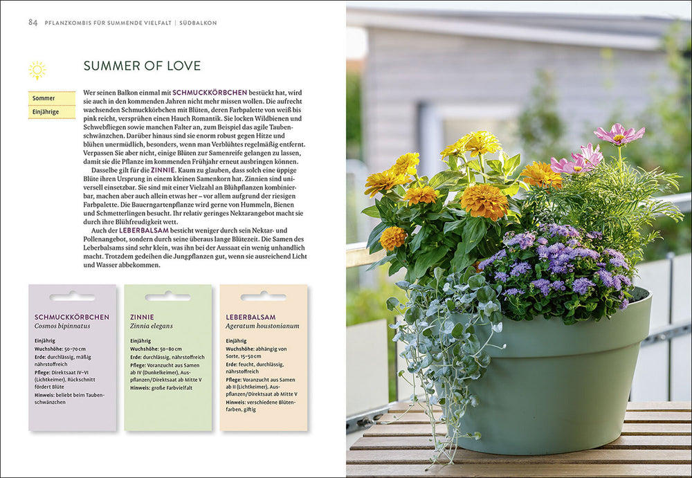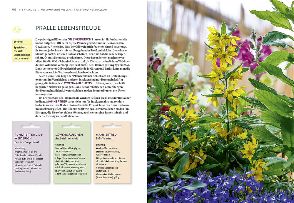 Dank 20 clever zusammengestellter Pflanzenkombinationen, die Sie überall problemlos erhalten, starten Sie direkt mit der Gestaltung. Passende Tipps zur Pflanzung und Pflege sorgen dafür, dass Ihr Balkon schon bald summt und brummt.