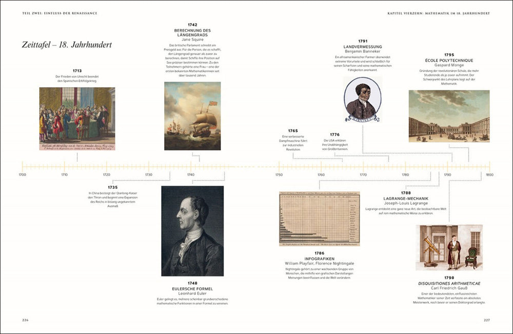 Jeder Abschnitt beleuchtet die wichtigsten Entwicklungen und macht die faszinierenden Geschichten hinter den Formeln lebendig. Über 400 anschauliche Bilder und Diagramme helfen dabei, selbst komplexe mathematische Ideen verständlich zu machen.