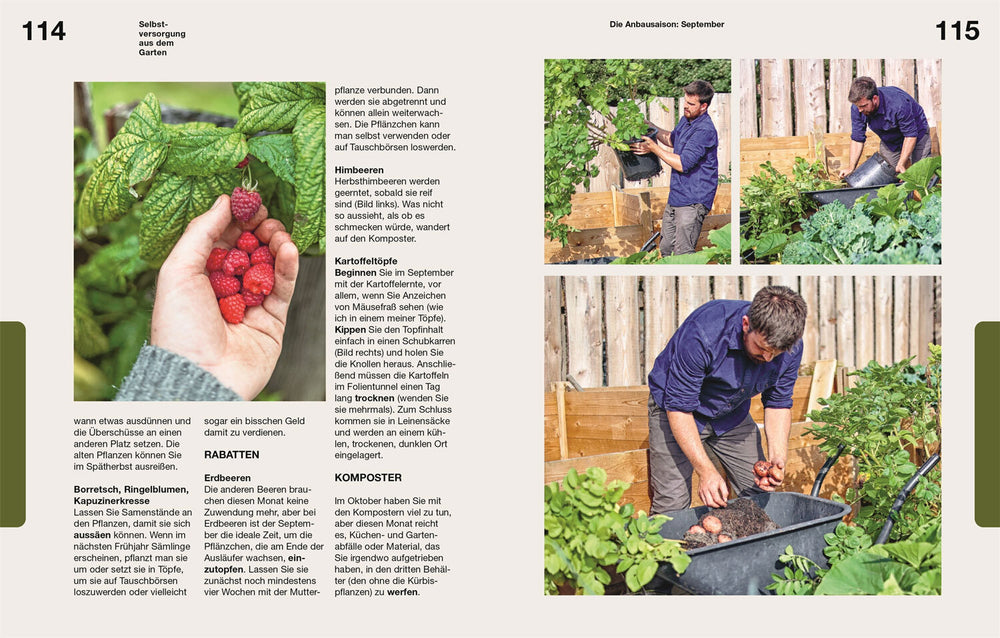 Von der ersten Planung über die richtige Aussaat bis zum Fermentieren der Ernte führen die Autoren Schritt für Schritt durch alle wichtigen Aufgaben im Gartenjahr. Sie erhalten hilfreiche To-dos, vielseitige Pflanzpläne und zahlreiche Rezepte, die zeigen, wie Sie Ihre Ernte optimal nutzen. Selbst auf begrenztem Raum sind beeindruckende Ergebnisse möglich: In ihrem eigenen Garten ernten die beiden fast 600 kg frische Lebensmittel pro Jahr.